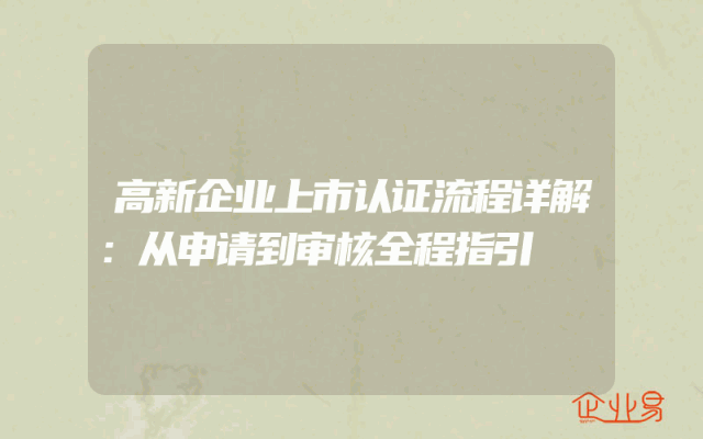 - 高新企业上市认证流程详解:从申请到审核全程指引