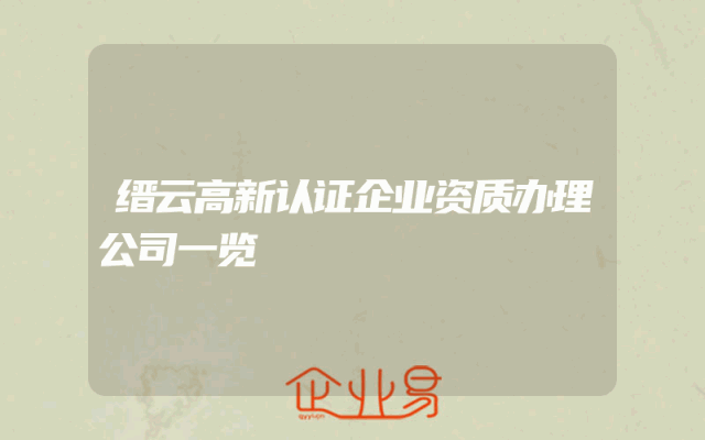 - 缙云高新认证企业资质办理公司一览