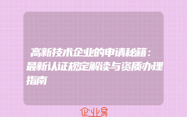 - 高新技术企业的申请秘籍:最新认证规定解读与资质办理指南