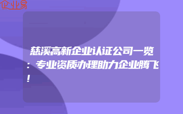 - 慈溪高新企业认证公司一览:专业资质办理助力企业腾飞!
