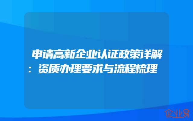 - 申请高新企业认证政策详解:资质办理要求与流程梳理
