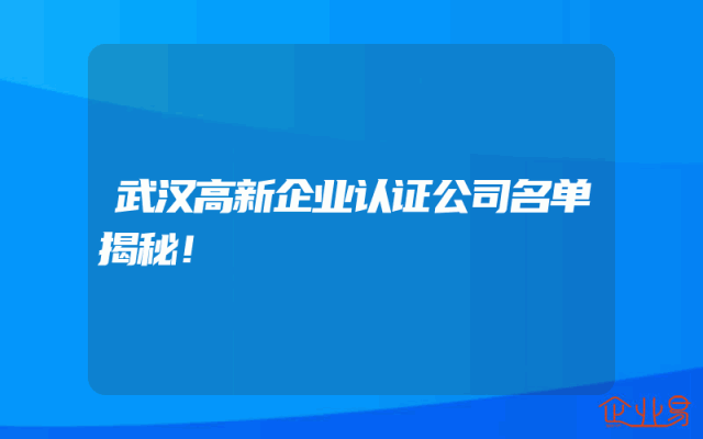 - 武汉高新企业认证公司名单揭秘!