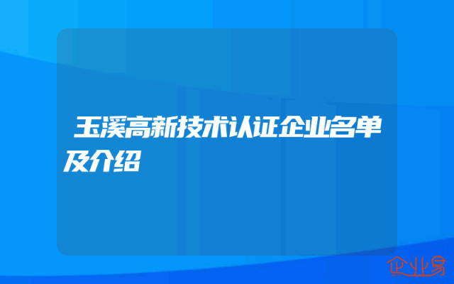 - 玉溪高新技术认证企业名单及介绍