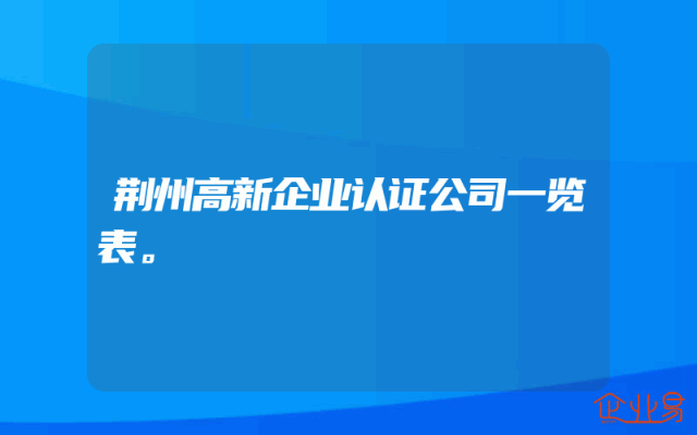 - 荆州高新企业认证公司一览表。