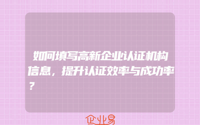 - 如何填写高新企业认证机构信息,提升认证效率与成功率?