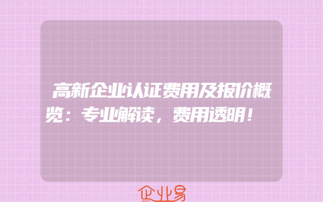 - 高新企业认证费用及报价概览:专业解读,费用透明!