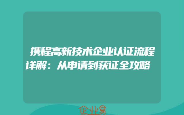 - 携程高新技术企业认证流程详解:从申请到获证全攻略
