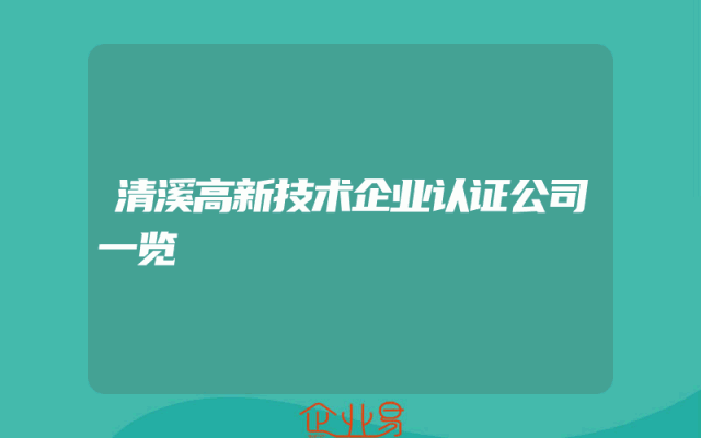 - 清溪高新技术企业认证公司一览