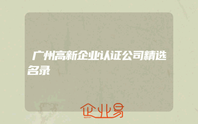 - 广州高新企业认证公司精选名录