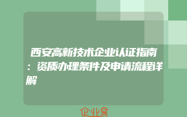 - 西安高新技术企业认证指南:资质办理条件及申请流程详解