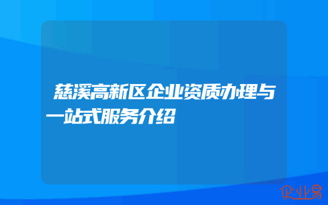 - 慈溪高新区企业资质办理与一站式服务介绍
