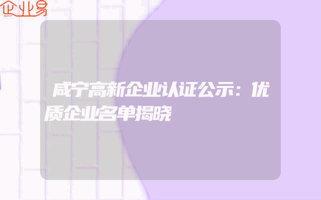 - 咸宁高新企业认证公示:优质企业名单揭晓