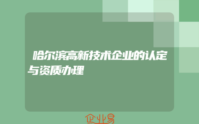 - 哈尔滨高新技术企业的认定与资质办理