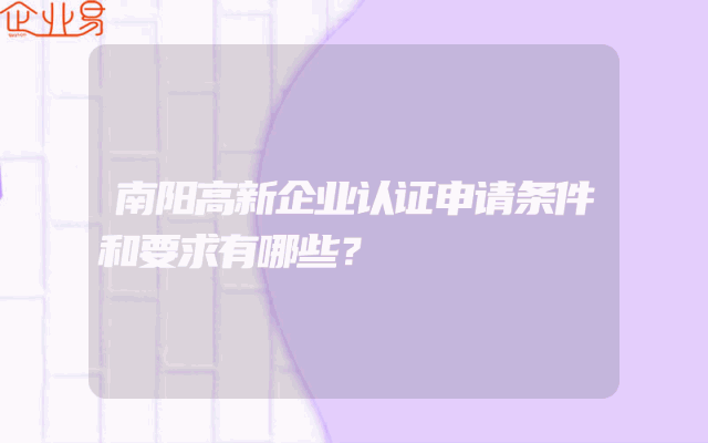 - 南阳高新企业认证申请条件和要求有哪些?