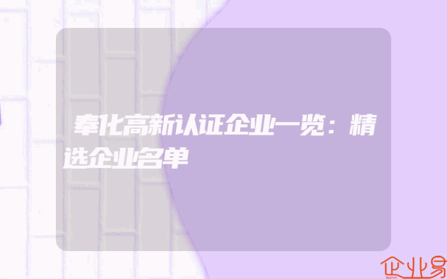 - 奉化高新认证企业一览:精选企业名单解析一、高新认证背景及意义在当今时代,科技创新已成为推动经济发展的核心动力。奉化地区紧跟时代步伐,积极培育高新技术企业,以实现产业转型升级。高新认证企业名单的公布,是对这些企业技术创新能力的肯定,同时也为更
