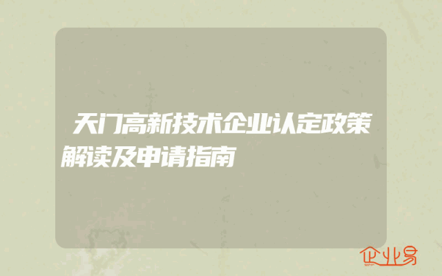 - 天门高新技术企业认定政策解读及申请指南一、天门高新技术企业认定政策解读天门高新技术企业认定政策是为了鼓励技术创新、推动产业升级、加快经济社会发展而制定的一项重要政策。该政策主要针对在天门地区注册并运营的高新技术企业,通过认定后,企业可以享受