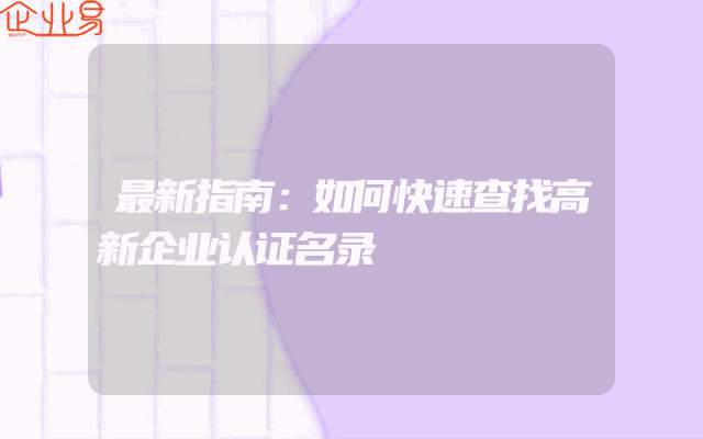 - 如何快速查找高新企业认证名录一、了解高新企业认证及其重要性高新企业认证是我国为了推动科技创新和发展而设立的一项认证制度。获得高新企业认证的企业,意味着其在技术创新、研发投入、产品竞争力等方面具备一定的优势。随着科技的快速发展,越来越多的人和