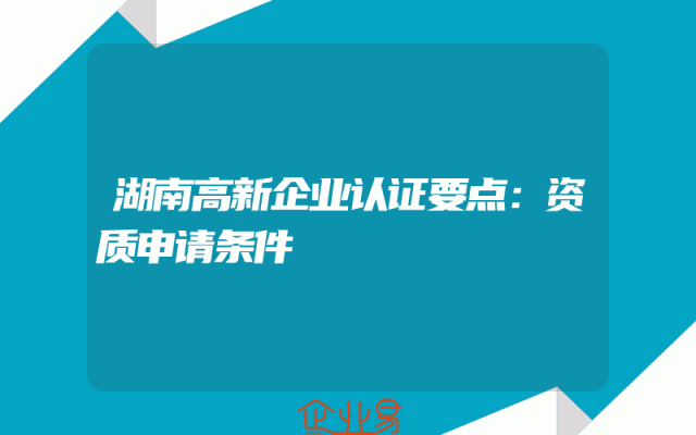 - 湖南高新企业认证要点:资质申请条件