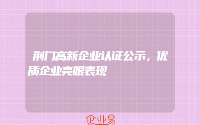 - 荆门高新企业认证公示,优质企业亮眼表现