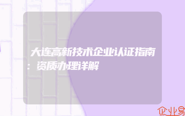 - 大连高新技术企业认证指南:资质办理详解
