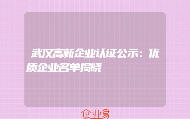 - 武汉高新企业认证公示:优质企业名单揭晓