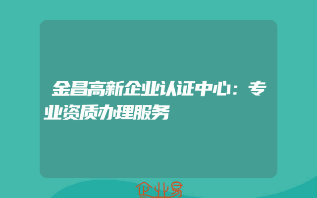 - 金昌高新企业认证中心:专业资质办理服务引言随着企业发展的步伐加快,企业对各类资质的需求也愈加严格。在这样的背景下,金昌高新企业认证中心致力于为广大企业提供专业、高效、便捷的资质办理服务,助力企业稳步发展。本文将详细阐述金昌高新企业认证中心在