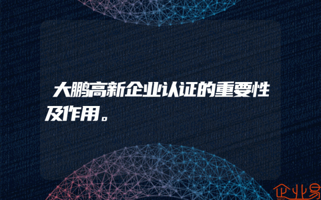 - 大鹏高新企业认证的重要性及作用解析一、大鹏高新企业认证的概念及其背景大鹏高新企业认证是为了鼓励企业技术创新和发展,提高区域产业竞争力而设立的一项认证制度。随着科技的不断进步,高新技术产业在经济发展中的地位日益重要。大鹏高新企业认证作为政策工