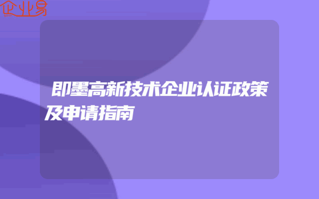 - 即墨高新技术企业认证政策及申请指南一、即墨高新技术企业认证政策概述即墨区为了推动高新技术产业的发展,出台了一系列针对高新技术企业的认证政策。这些政策旨在鼓励企业创新,提高技术水平,增强市场竞争力。对于成功获得高新技术企业认证的企业,将享受税