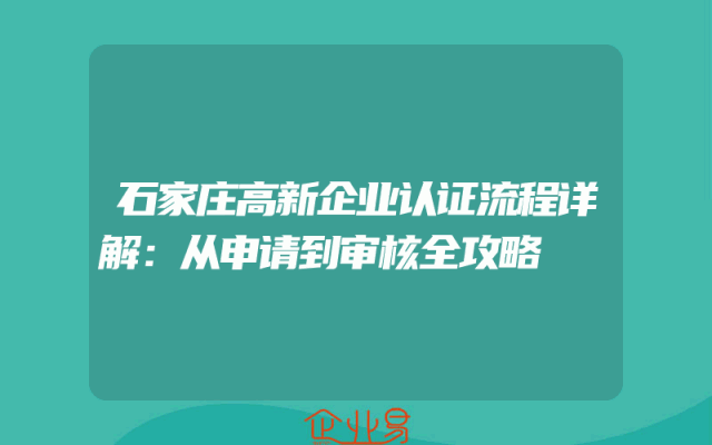 - 石家庄高新企业认证流程详解:从申请到审核全攻略