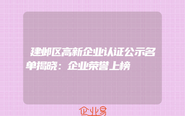- 建邺区高新企业认证公示名单揭晓:企业荣誉上榜
