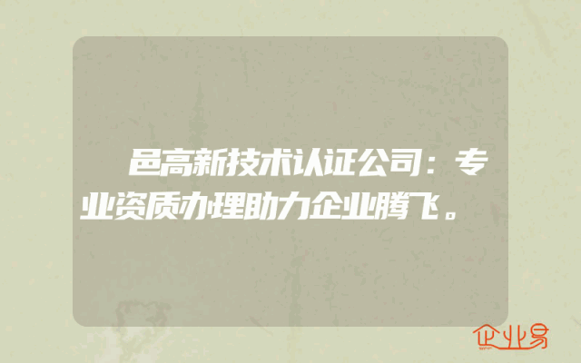 - 鄠邑高新技术认证公司:专业资质办理助力企业腾飞。