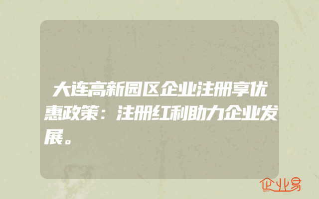 - 大连高新园区企业注册享优惠政策:注册红利助力企业发展。