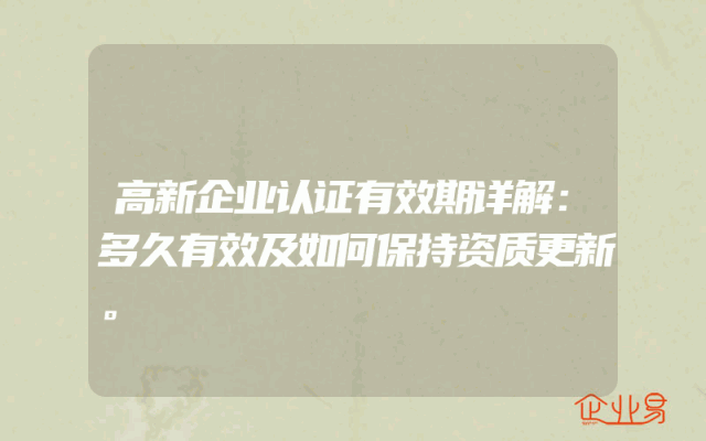 - 高新企业认证有效期详解:多久有效及如何保持资质更新。