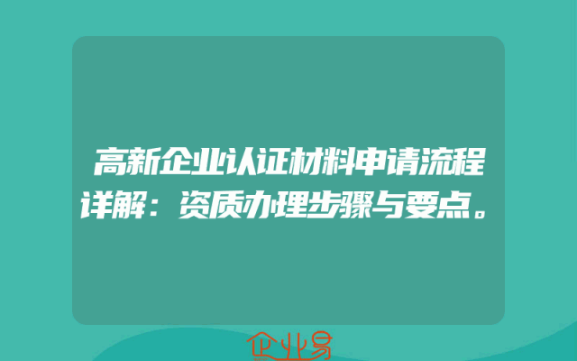- 高新企业认证材料申请流程详解:资质办理步骤与要点。