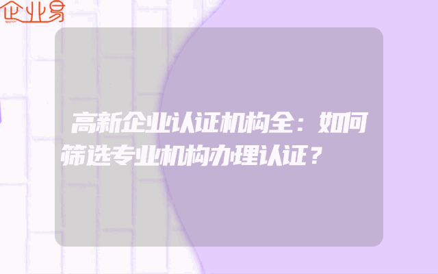 - 高新企业认证机构全:如何筛选专业机构办理认证?