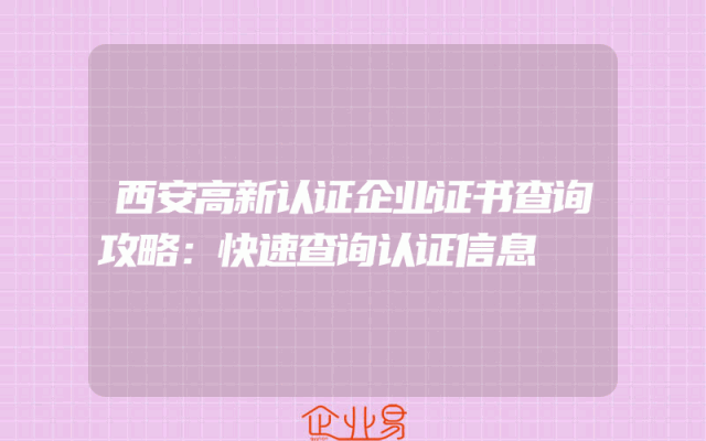 - 西安高新认证企业证书查询攻略:快速查询认证信息