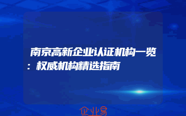 - 南京高新企业认证机构一览:权威机构精选指南一、南京高新企业认证机构概述南京,一座历史与现代化交融的城市,孕育了众多科技创新型企业。随着高新技术产业的蓬勃发展,南京高新企业认证成为众多科技企业关注的焦点。本文将为您介绍南京高新企业认证机构,帮
