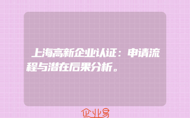 - 上海高新企业认证:申请流程与潜在后果分析。