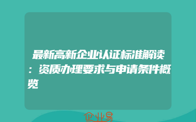 - 最新高新企业认证标准解读:资质办理要求与申请条件概览