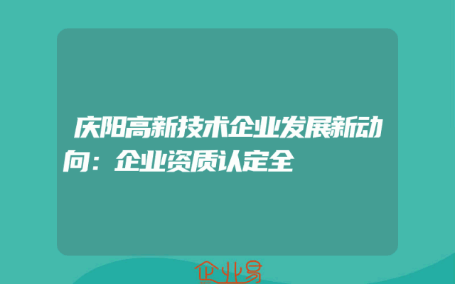 - 庆阳高新技术企业发展新动向:企业资质认定全