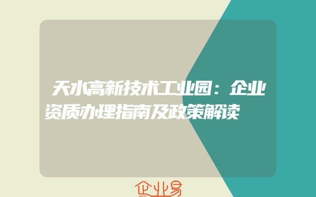 - 天水高新技术工业园:企业资质办理指南及政策解读