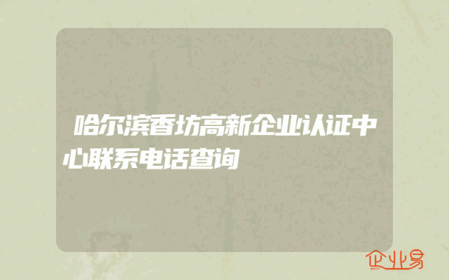 - 哈尔滨香坊高新企业认证中心联系电话查询