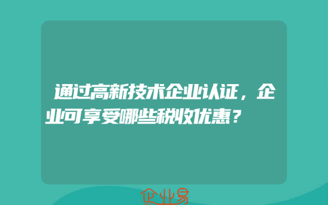 - 通过高新技术企业认证,企业可享受哪些税收优惠?
