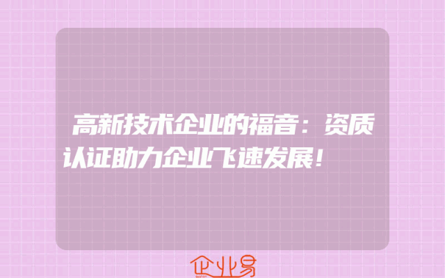 - 高新技术企业的福音:资质认证助力企业飞速发展!