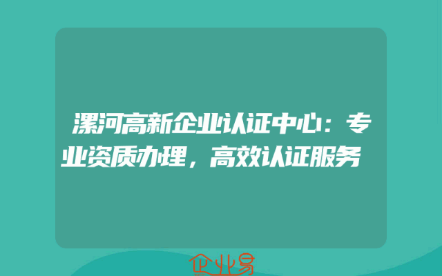 - 漯河高新企业认证中心:专业资质办理,高效认证服务