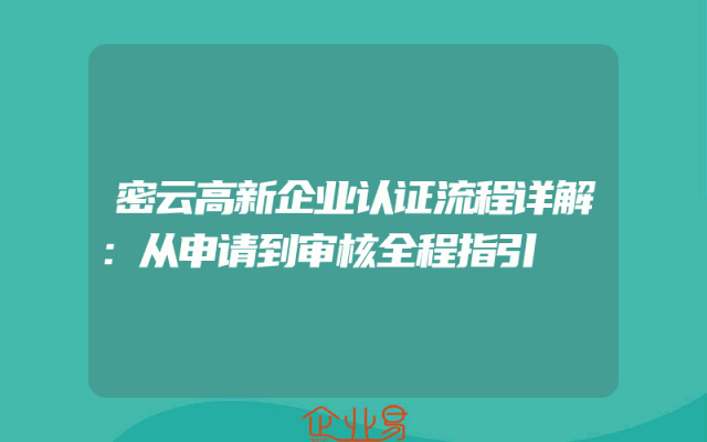 - 密云高新企业认证流程详解:从申请到审核全程指引