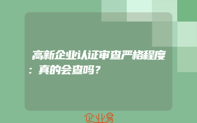 - 高新企业认证审查严格程度:真的会查吗?