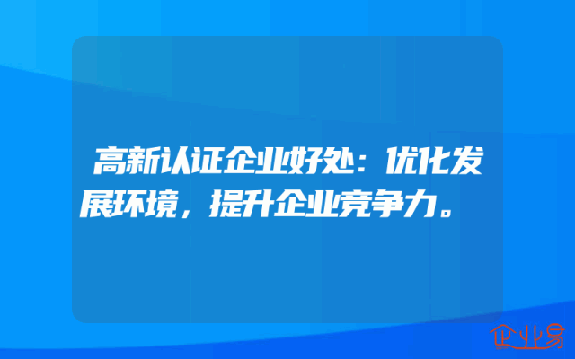 - 高新认证企业好处:优化发展环境,提升企业竞争力。