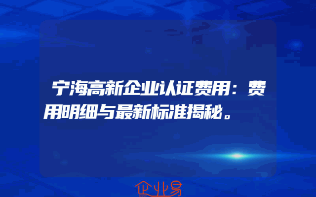 - 宁海高新企业认证费用:费用明细与最新标准揭秘。