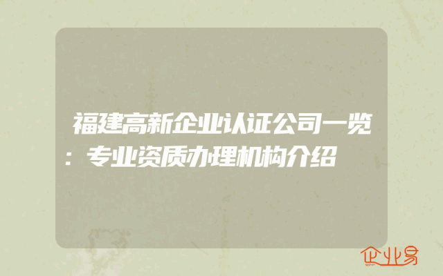 - 福建高新企业认证公司一览:专业资质办理机构介绍